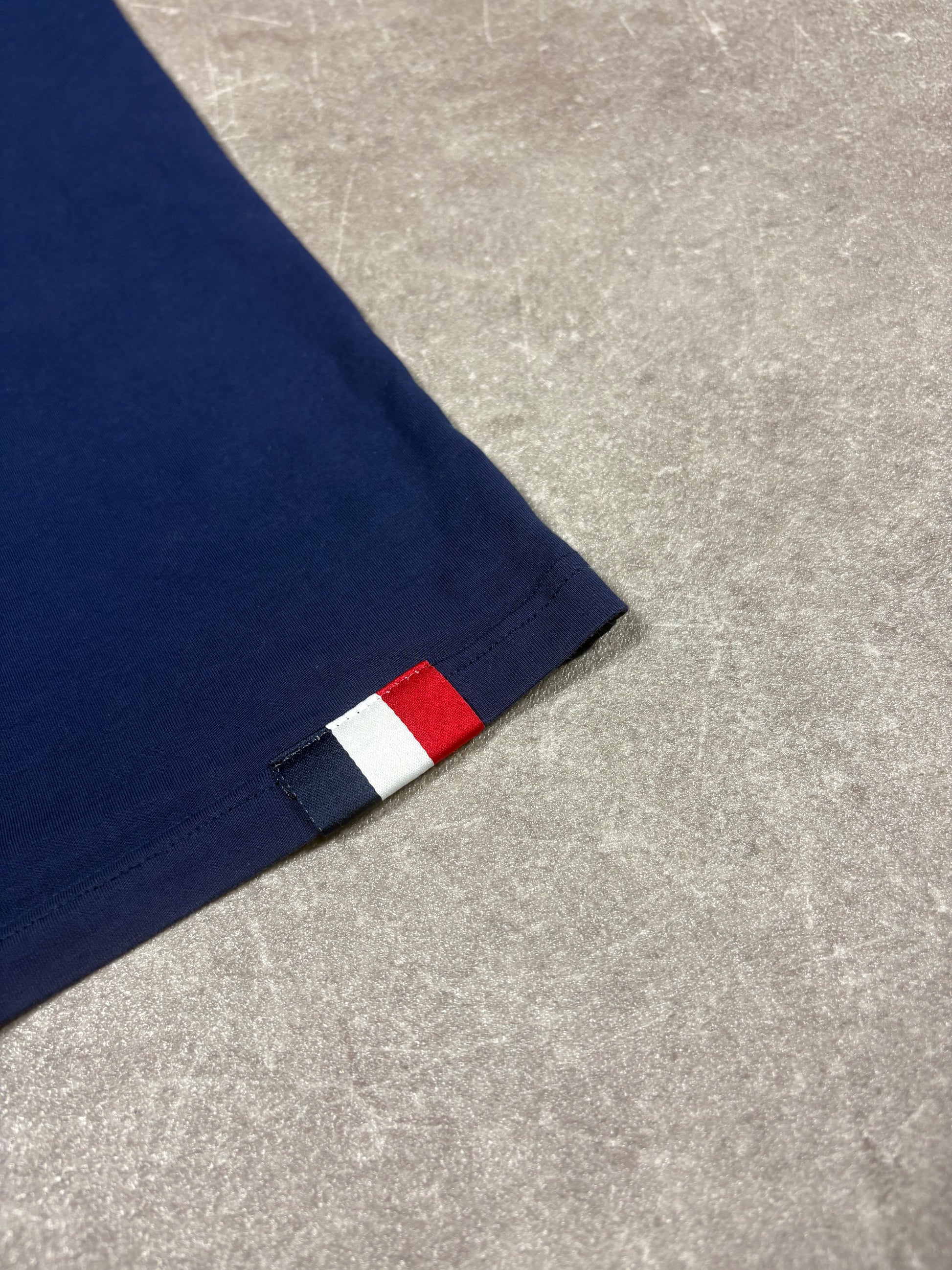 Das FRANCE TEAM Slimfit Tee in tiefem Bleu Marine verbindet französische Renaissance mit präziser Verarbeitung: ein körpernaher Schnitt mit geripptem Rundhals, vorne die geschwungene „France.“ Signatur samt Motto „Rien tombe du ciel.“, flankiert vom gestickten FRANCE-Wappen und einem ovalen Racing-Patch; hinten setzt der prägnante „FRANCE TEAM“ Rückenprint ein klares Statement. Trikolore-Details am Nacken und als Flag-Patch am Saum sowie die Signature-Stickerei am hinteren Saum verleihen dem Shirt sein luxuriöses Finish. Gefertigt aus weichem Premium-Baumwoll-Jersey mit sauber gefassten Kanten und verstärkten Nähten – ein Piece, das mühelos zwischen sportivem Auftritt und zeitloser Eleganz steht.